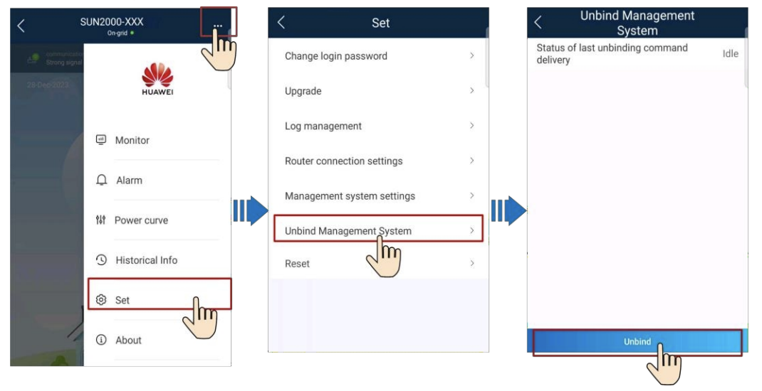 sur l'écran de mise en service locale de l'onduleur, choisissez ... > Set > Unbind Management System.